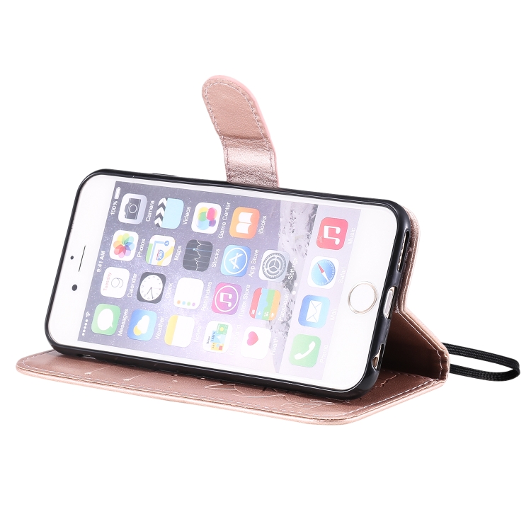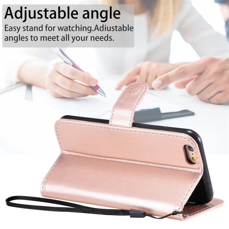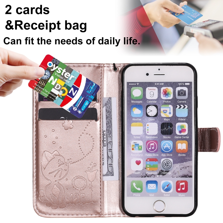 Funda para iPhone 6 Cat Bee Patrón en Relieve Cuero con Tapa Horizontal Soporte Ranuras Tarjetas Billetera (Oro Rosa)