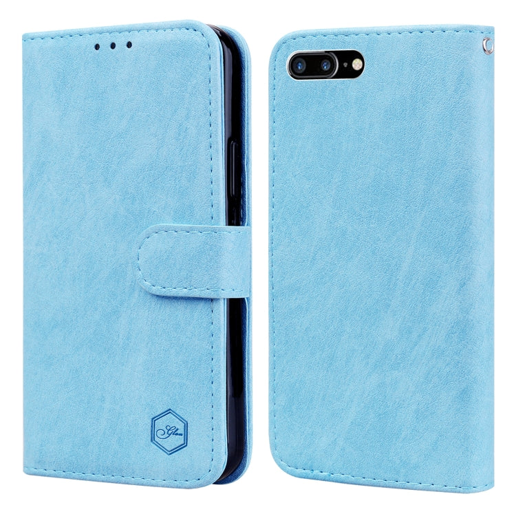 Funda para Teléfono iPhone 6 Plus 7 Plus 8 Plus Sensación de Piel Textura Cuero Aceitoso Pu + TPU (Azul Claro)