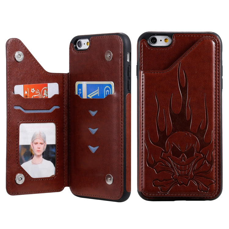 Estuche protector para iPhone 6S Plus 6 Plus Skull Head patrón en relieve a prueba de golpes con soporte y ranuras para tarjetas y billetera (Verde)