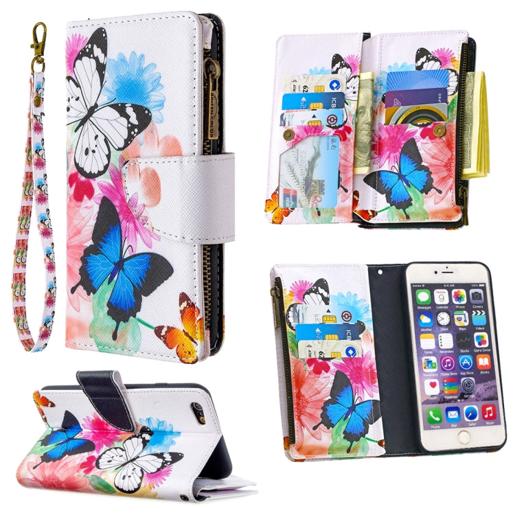 Funda de Cuero para iPhone 6S Plus y 6 Plus con Patrón de Dibujo, Cremallera, Tapa Horizontal, Soporte y Ranuras para Tarjetas