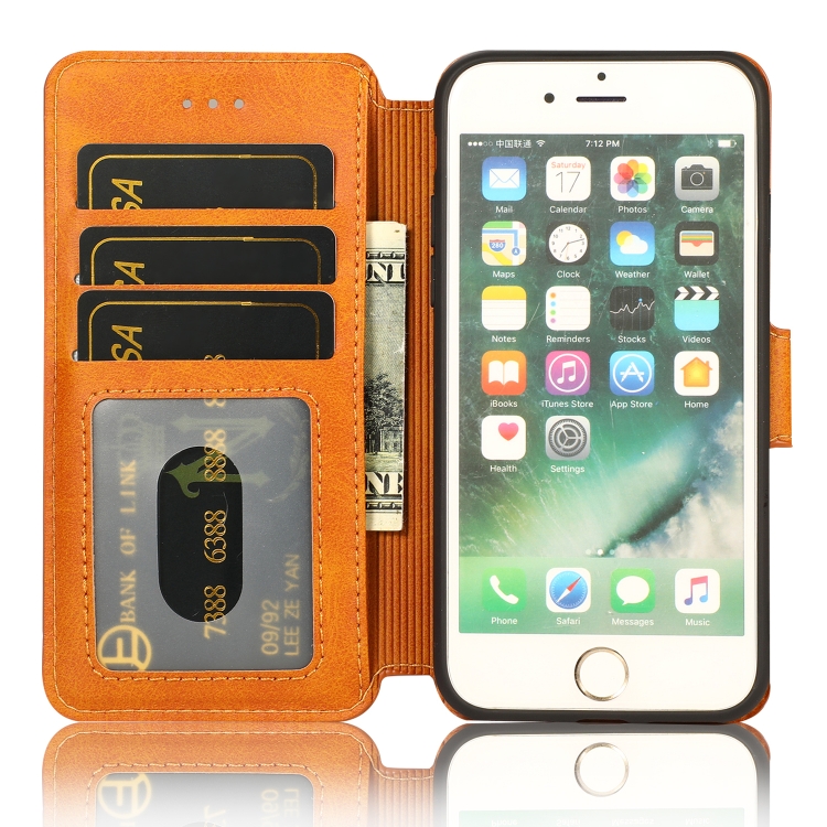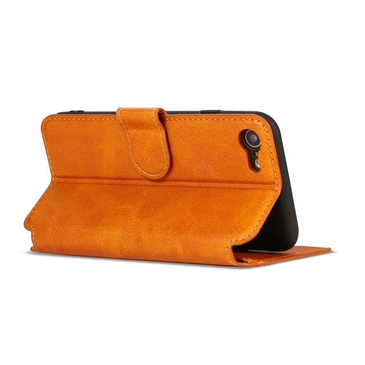 Funda para iPhone 7/8 Cuero con Tapa Horizontal Hebilla Magnética Soporte Ranuras Tarjetas Billetera Marco Fotos (Caqui)