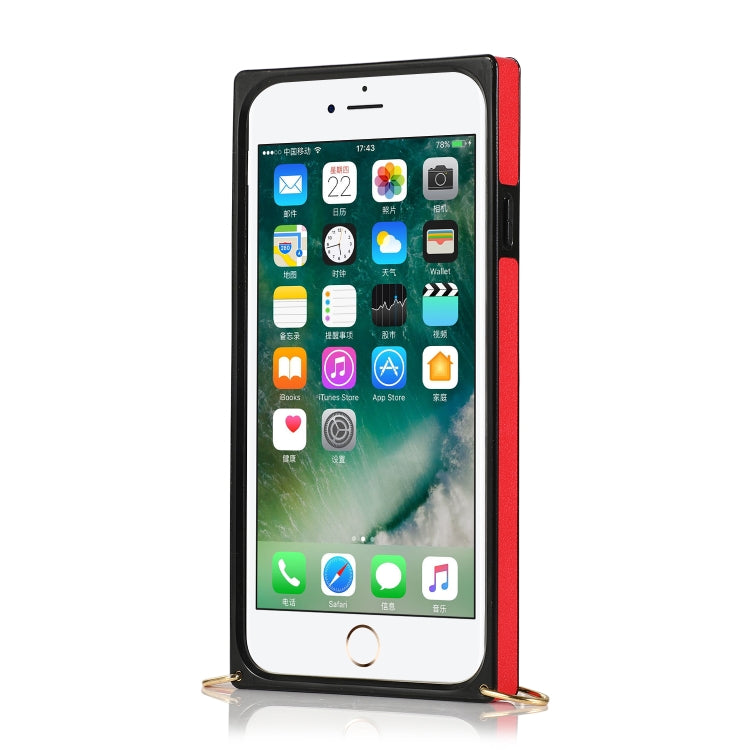 Correa de Muñeca Pu + Estuche TPU Protector para iPhone 7/8 / SE 2020 a Prueba de Golpes con Cordón Cruzado Soporte y Ranura para Tarjeta (Rojo)