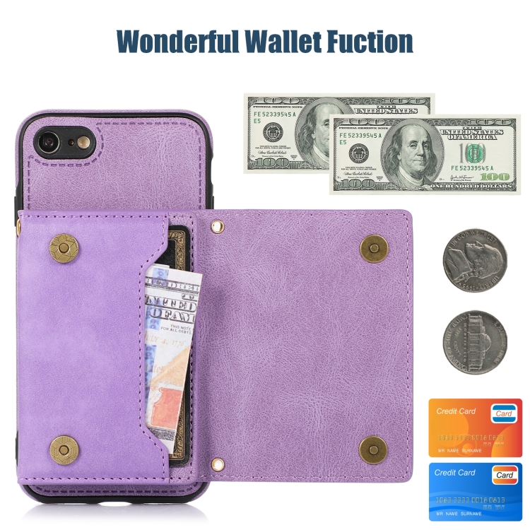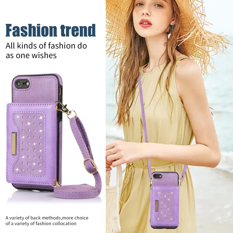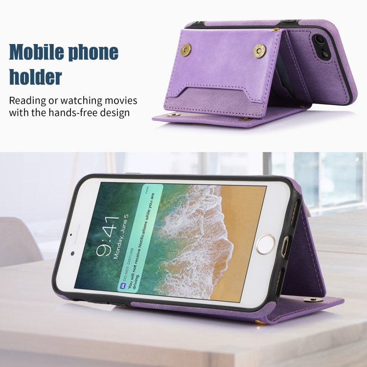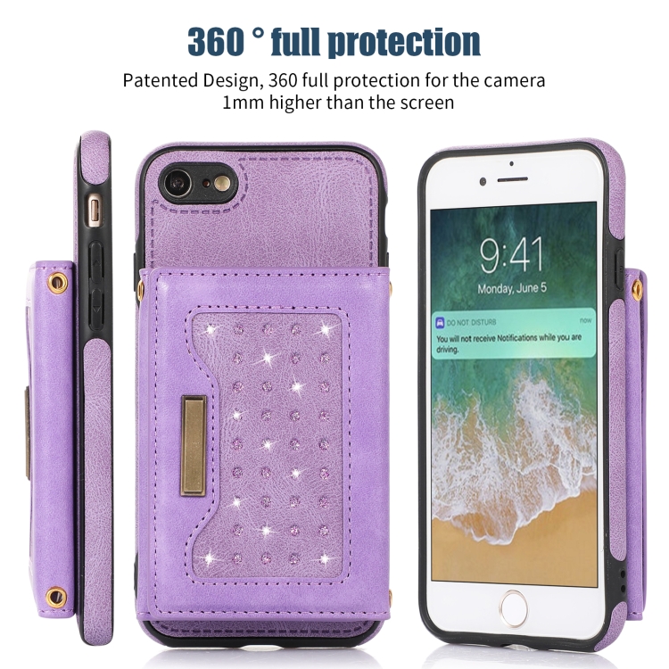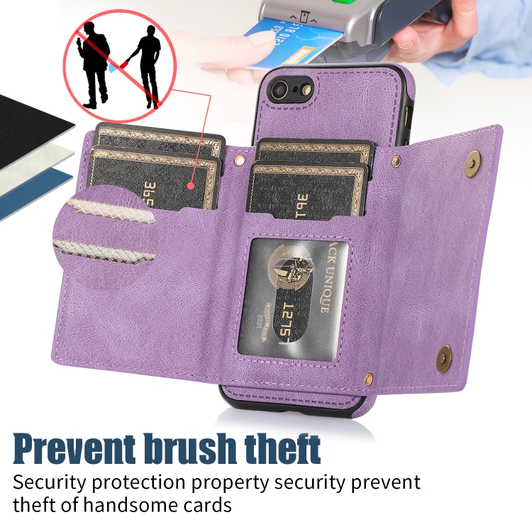 Estuche de Teléfono Cuero Rfid para iPhone 7/8/Se 2020/Se 2022 Tres Pliegues con Cordón (Púrpura)