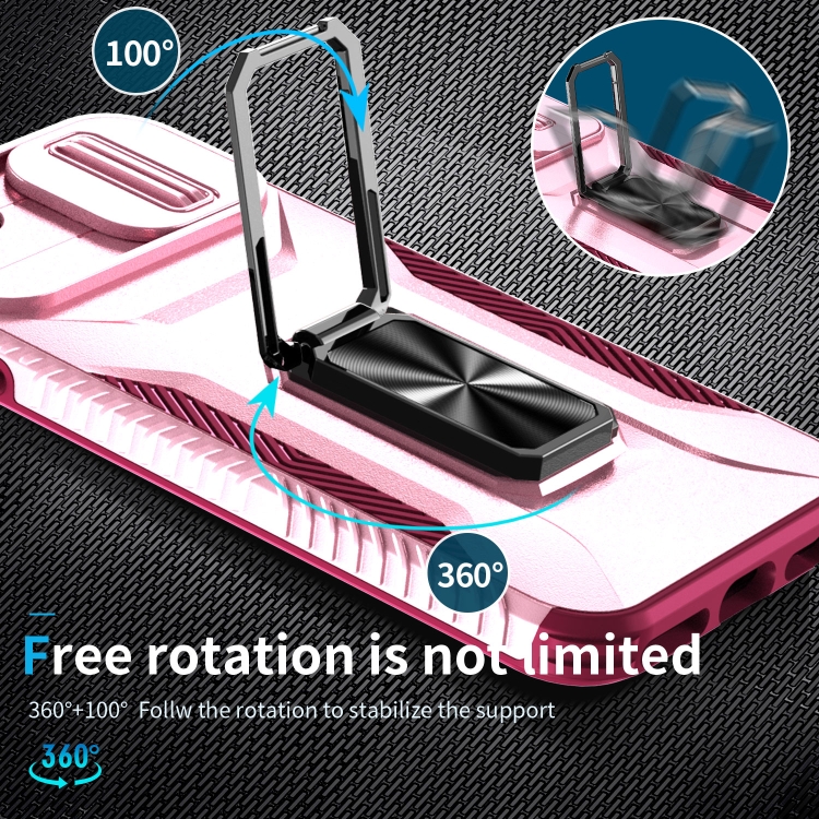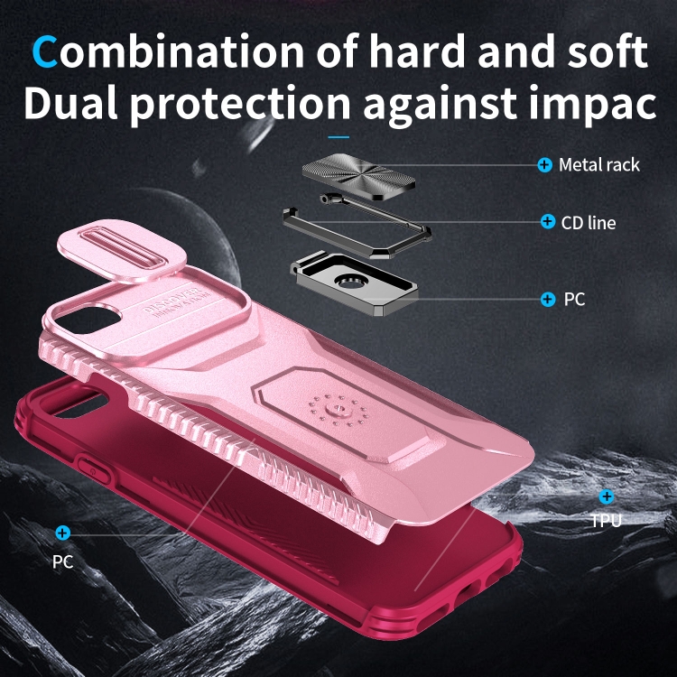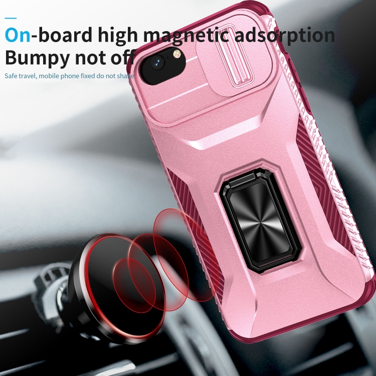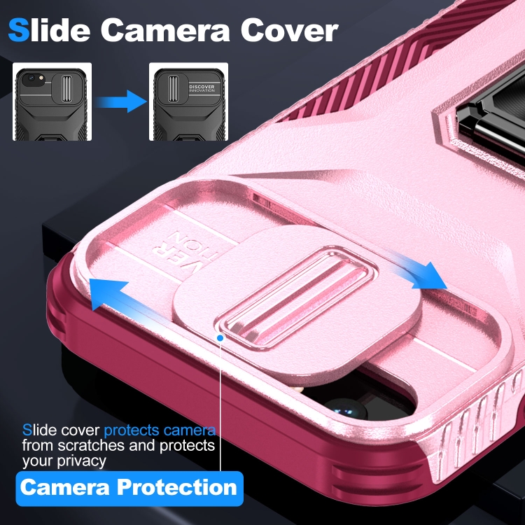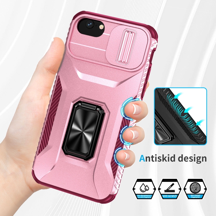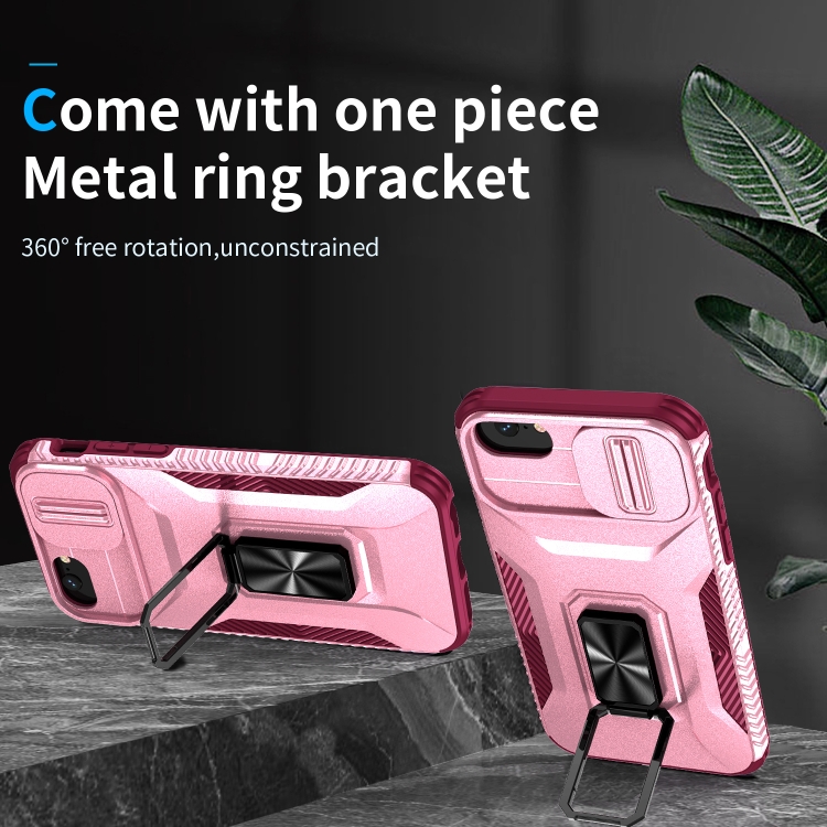Estuche para Teléfono iPhone 7 con Soporte Deslizante para Levas (Rosa + Rojo Rosa)