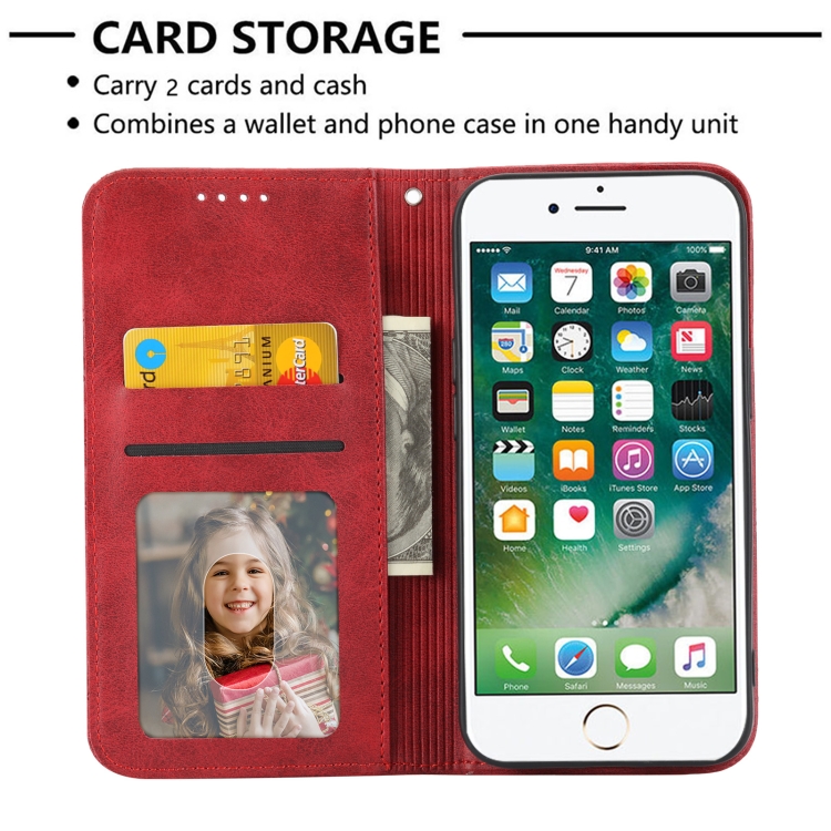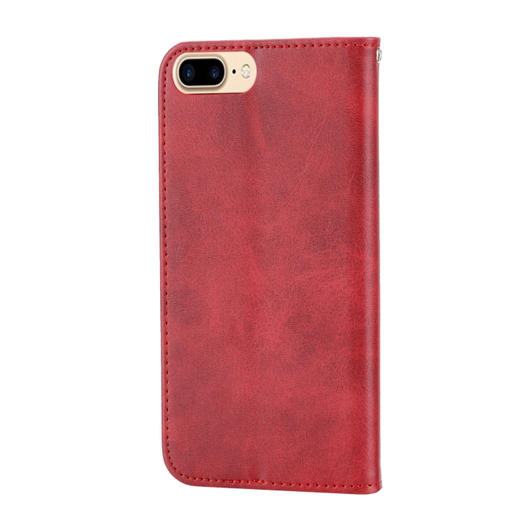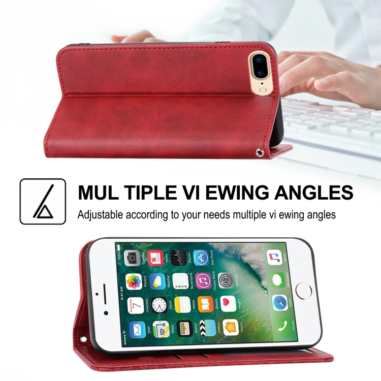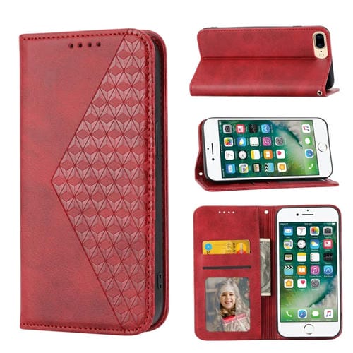 For iPhone 7 Plus/8 Plus Cubic Grid Calfskin Texture Magnetic Closure Leather Phone Case (Red)