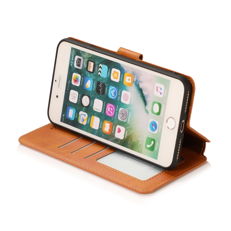 Estuche para iPhone 7 Plus y 8 Plus Cuero Tapa Horizontal Hebilla Magnética Soporte Ranuras Tarjetas Billetera Marco Fotos (Caqui)