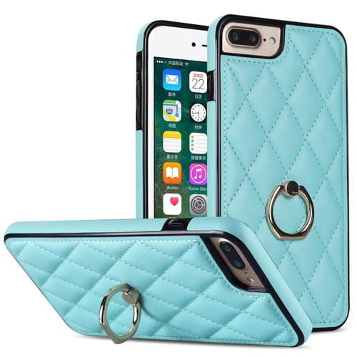 Estuche de teléfono iPhone 7 Plus 8 Plus cuero PU rómbico con soporte para anillo (Azul)
