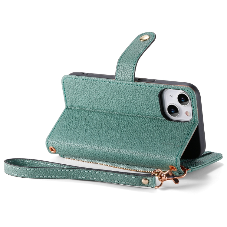 Funda para iPhone 7 Plus y 8 Plus Love Zipper Lanyard Leather Phone Case (Verde)