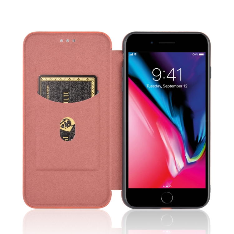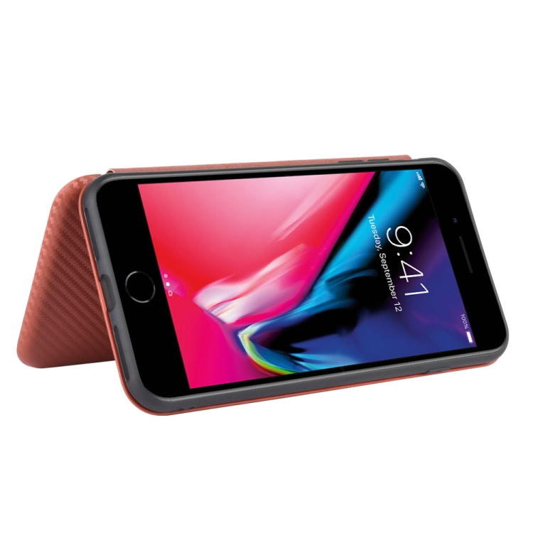 Funda para iPhone 7 Plus y 8 Plus Textura Fibra de Carbono Flip Horizontal Magnético TPU PC Cuero Pu con Ranura para Tarjeta (Marrón)