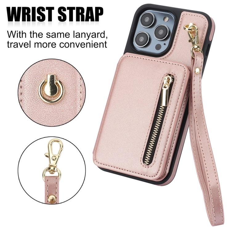 Estuche para Teléfono iPhone 7 Plus 8 Plus Ym006 Bolsa para Tarjetas Cremallera Sensación de Piel Cordón Doble (Oro Rosa)