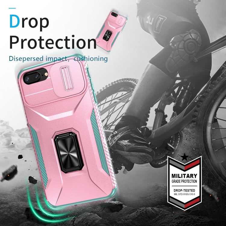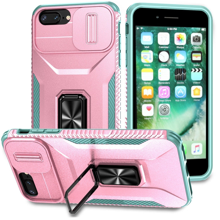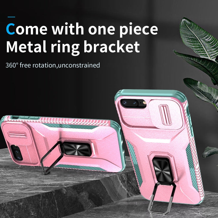 Estuche para teléfono iPhone 7 Plus con soporte deslizante para levas (Rosa + Gris Verde)