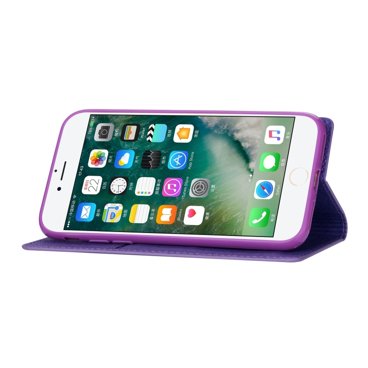 Estuche de Cuero para iPhone 8/7 con Tapa Horizontal Magnética Ultradelgada Purpurina Soporte y Ranuras para Tarjetas (Púrpura)