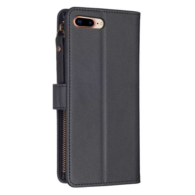 Funda de Cuero para iPhone 8 Plus y 7 Plus con 9 Ranuras para Tarjetas y Cremallera (Negro)