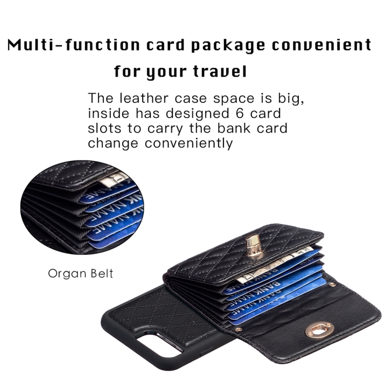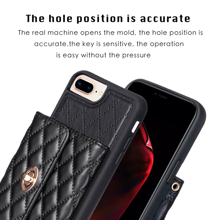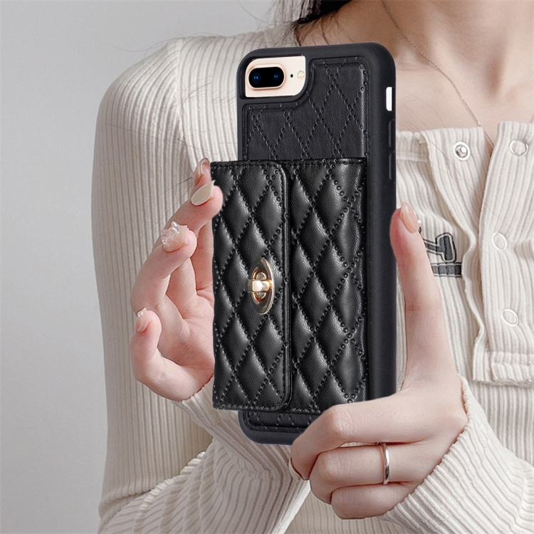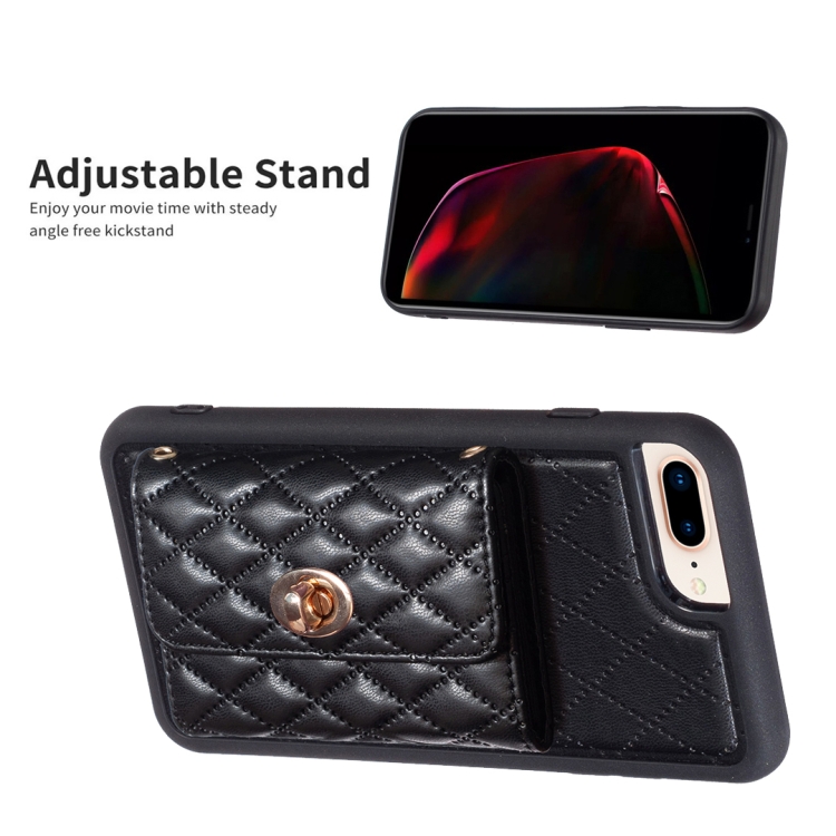 Estuche para teléfono Cartera iPhone 8 Plus 7 Plus Hebilla Metal Horizontal Cuero Rómbico (Negro)