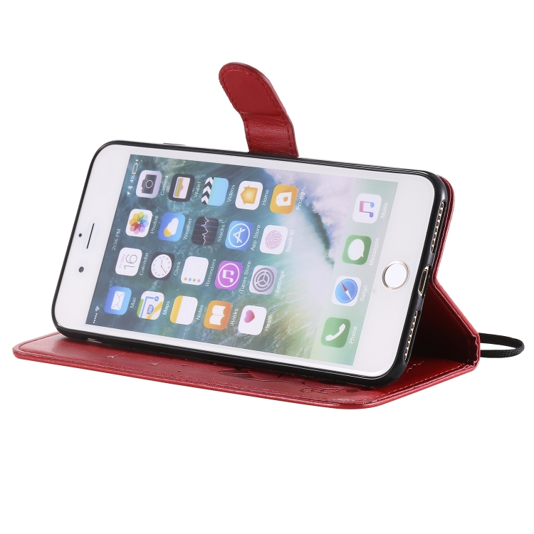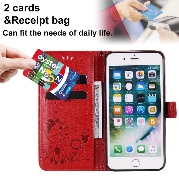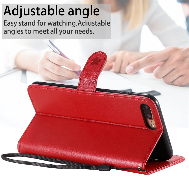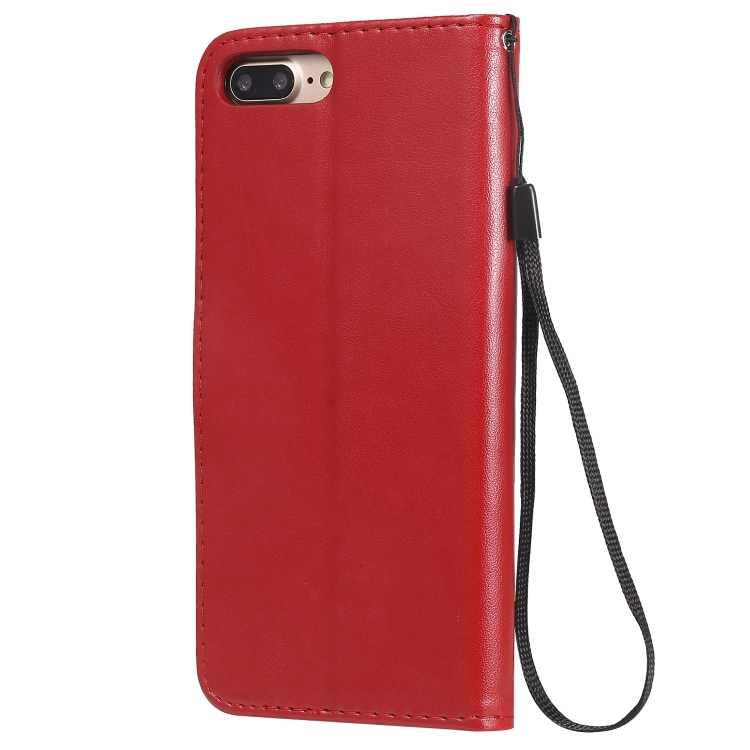 Funda de Cuero Cat Bee para iPhone 8 Plus y 7 Plus con Tapa Horizontal, Soporte, Ranuras para Tarjetas y Billetera (Rojo)