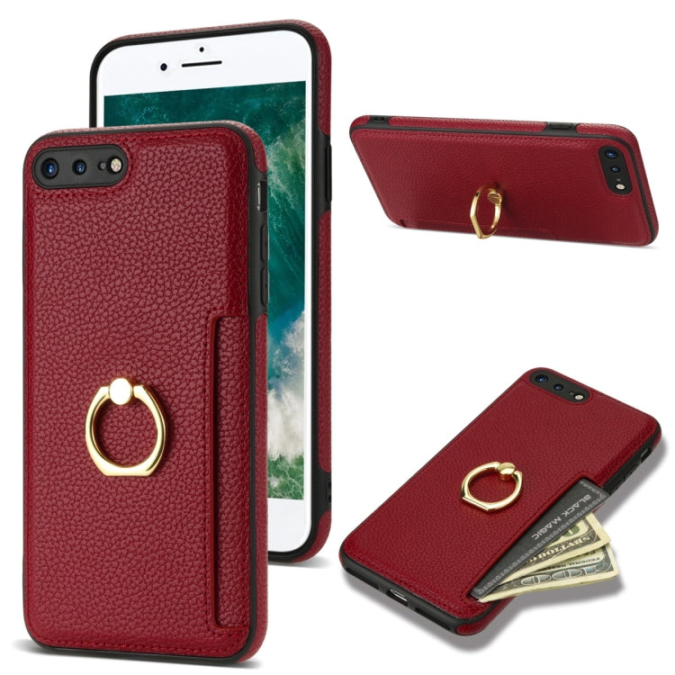 Estuche para Teléfono iPhone 8 Plus 7 Plus con Parte Trasera de Cuero Litchi y Tarjeta de Anillo (Rojo)