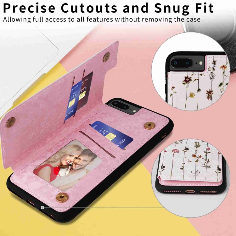 Funda para Teléfono iPhone 8 Plus/7 Plus Antirrobo Rfid con Doble Hebilla (Mundo de Flores Secas)