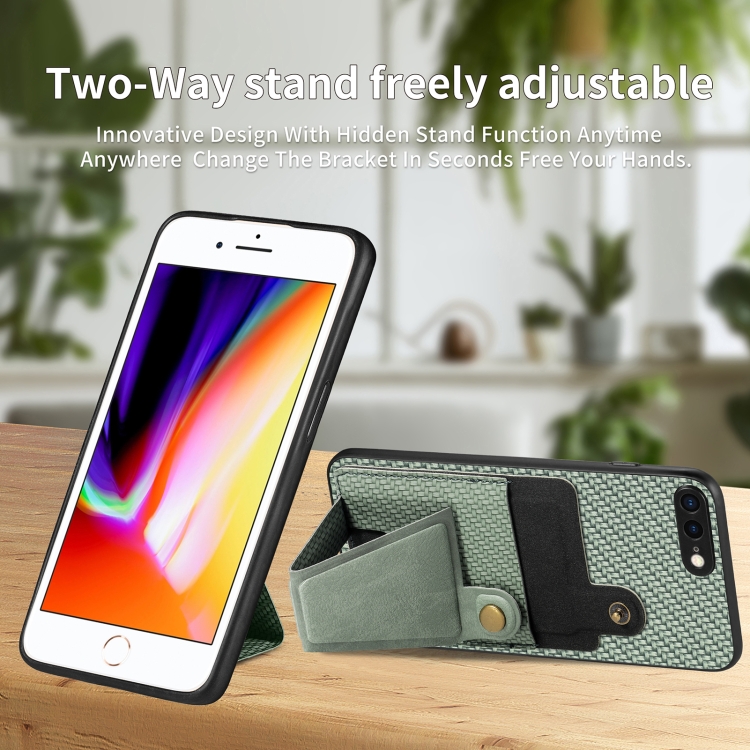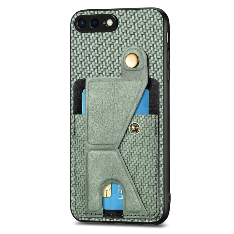 Funda de Teléfono para iPhone SE 2022/2020/7/8 con Soporte en Forma de K y Billetera de Fibra de Carbono (Verde)