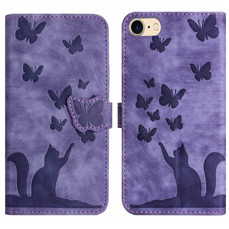 For iPhone SE 2022/2020/8/7 Butterfly Cat Pattern Flip Leather Phone Case (Purple)