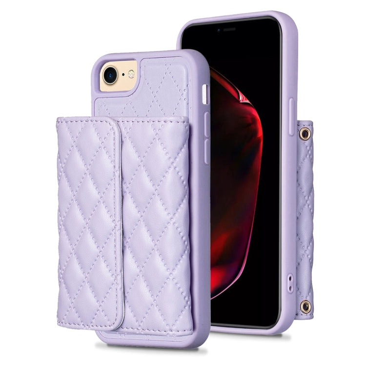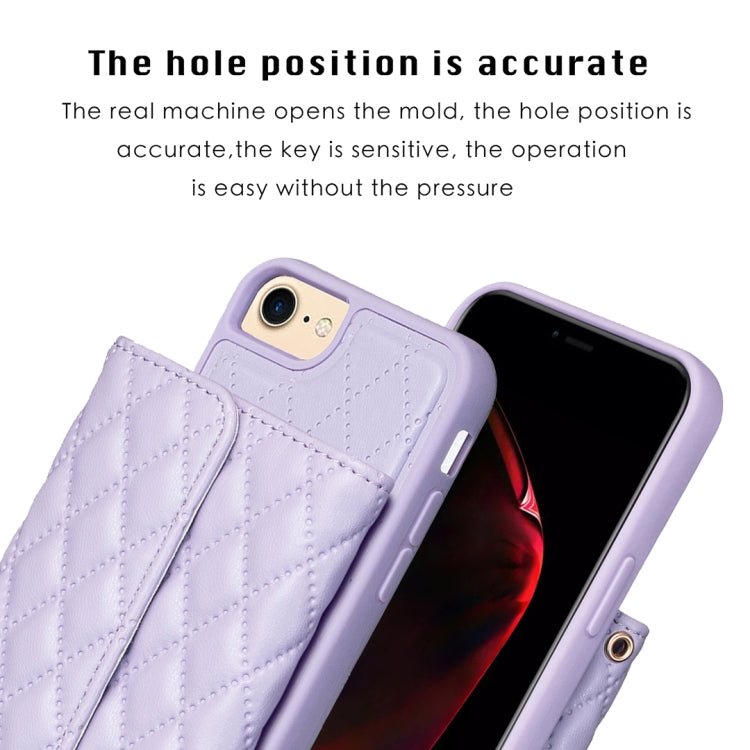 Estuche de Teléfono Cuero Rómbico con Billetera Horizontal para iPhone SE 2022 / SE 2020 / 7 / 8 (Púrpura)