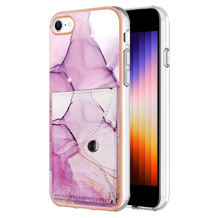 Funda para Teléfono iPhone Se 2022/Se 2020/8/7 con Ranura para Tarjeta Imd Patrón Mármol (Oro Rosa Púrpura)