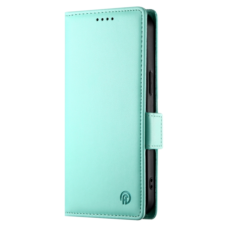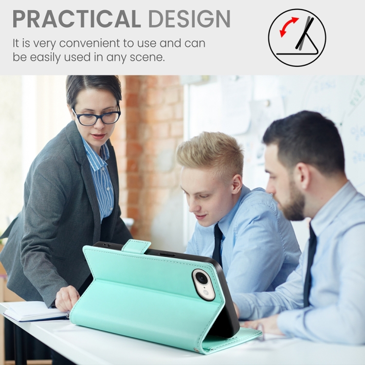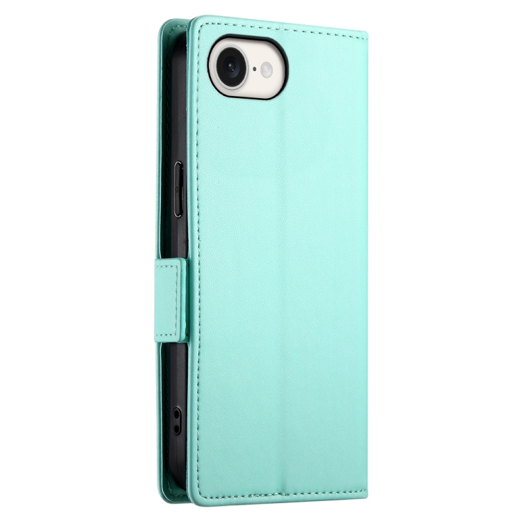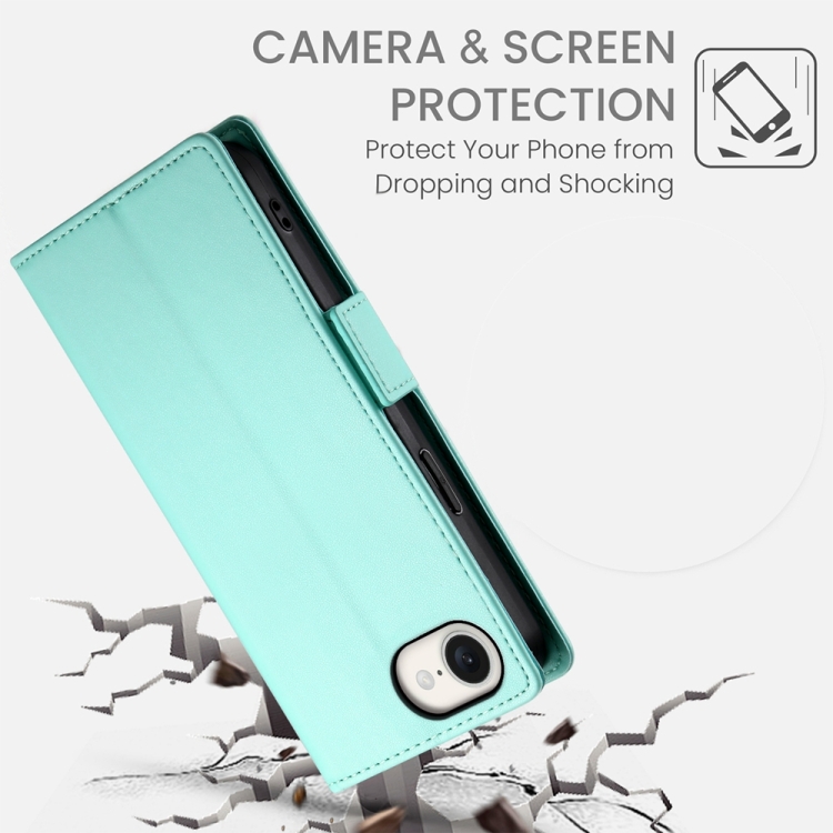 Funda de Cuero Esmerilado para iPhone 16E con Cierre Magnético y Hebilla Lateral (Verde Menta)