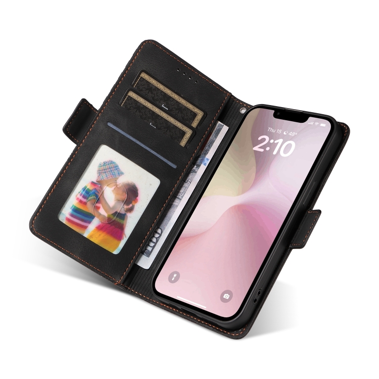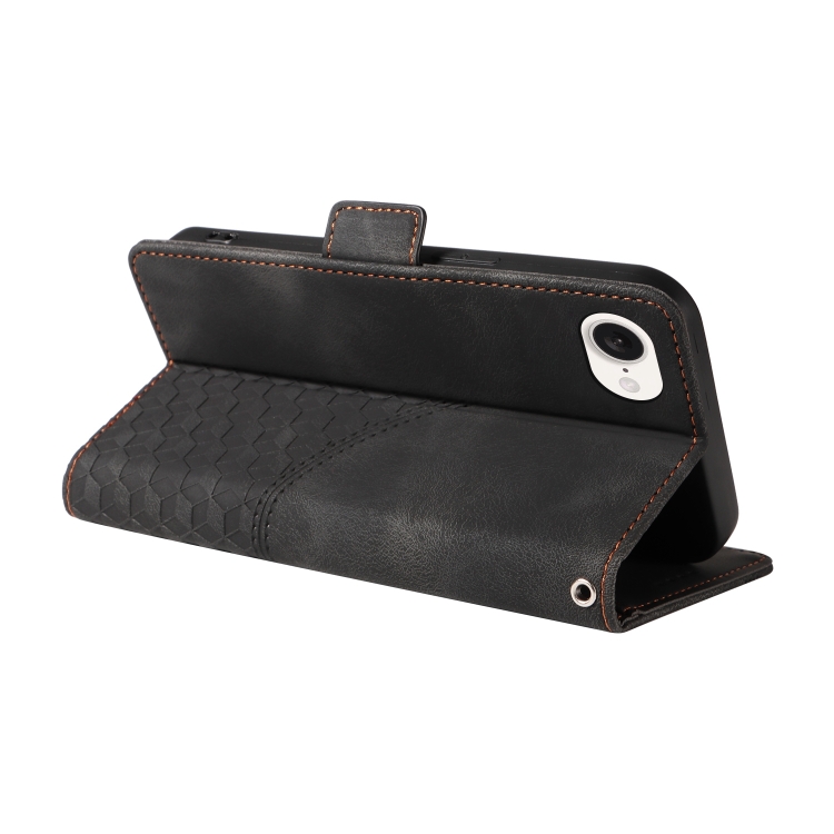 Funda de Cuero para iPhone 16E con Rombos en Relieve y Estrellas (Negra)