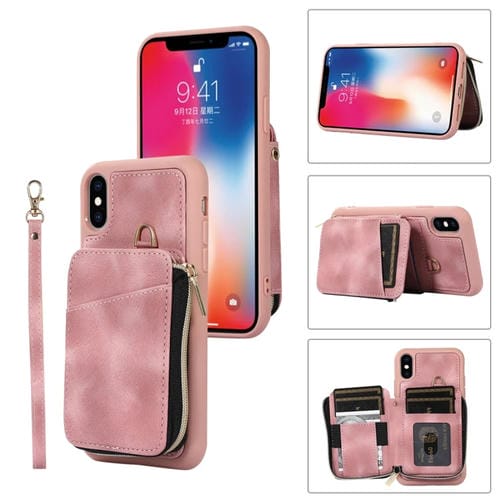 Bolsa de Tarjeta con Cremallera Funda Trasera para Teléfono iPhone X / Xs (Rosa)