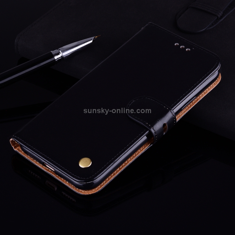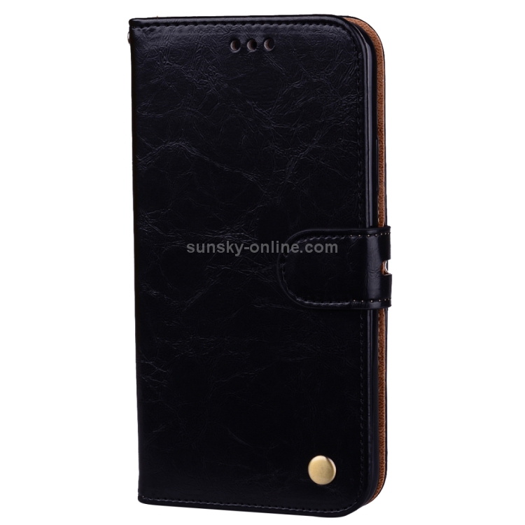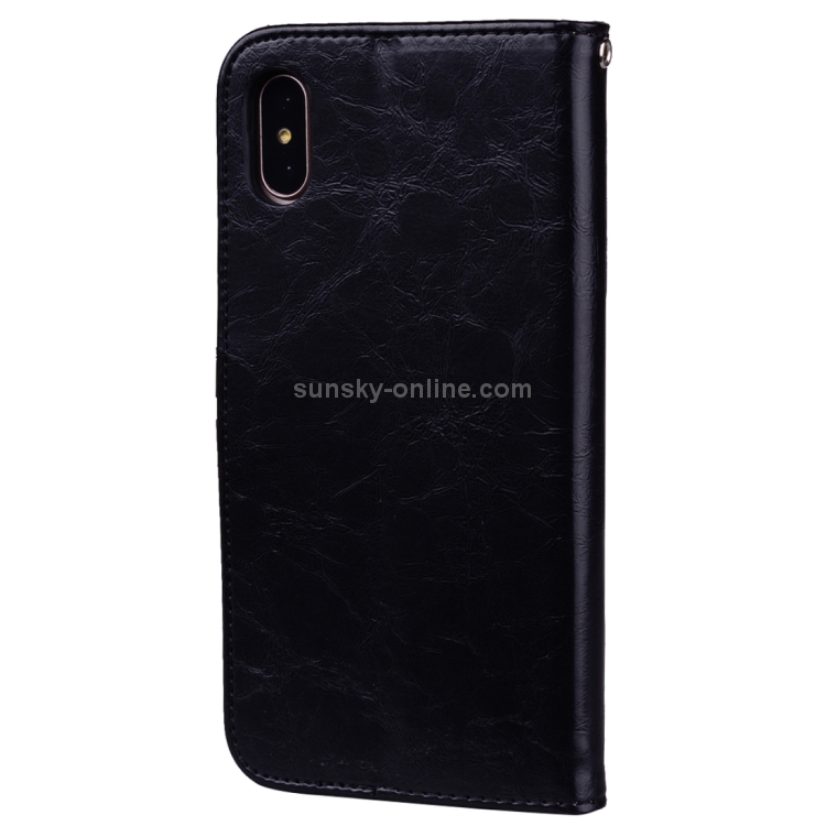 Funda de Cuero para iPhone X Xs Business Style Oil Wax Texture con Tapa Horizontal Soporte Ranuras Tarjetas Billetera (Negro)