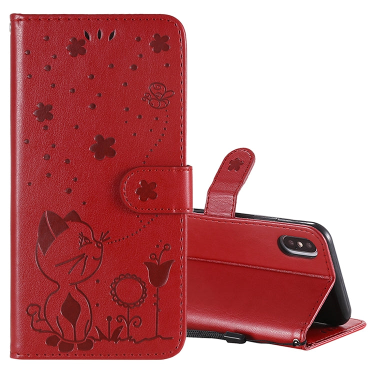 Funda de Cuero Cat Bee para iPhone X Xs con Tapa Horizontal, Soporte y Ranuras para Tarjetas (Rojo)