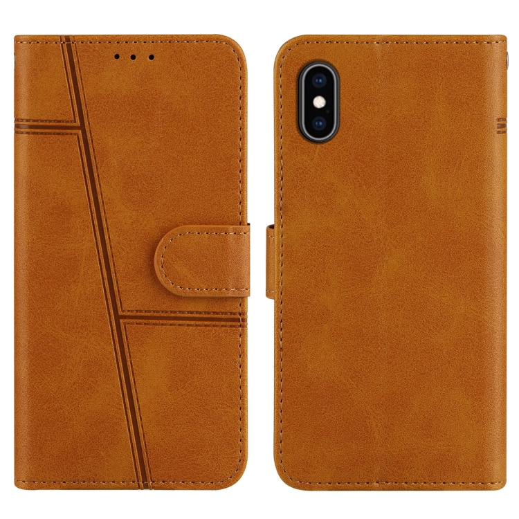Funda de Cuero para iPhone X Xs Costura Textura de Pantorrilla con Tapa Horizontal Soporte Ranuras para Tarjetas Billetera y Cordón (Amarillo)