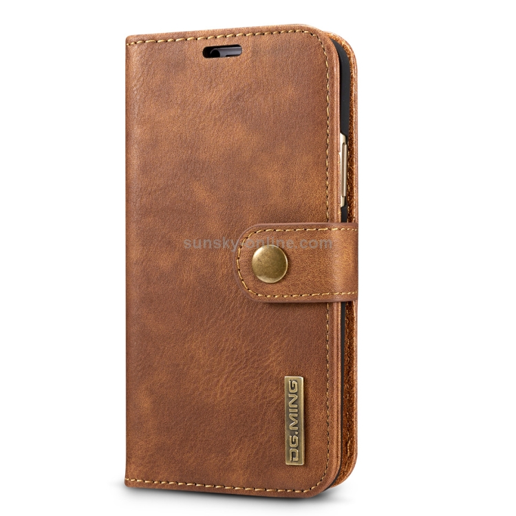 Funda protectora Dg.Ming Crazy Horse para iPhone X Xs con tapa horizontal, soporte, ranuras para tarjetas y billetera (Marrón)