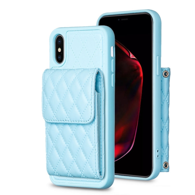 Estuche de Teléfono Cuero Rómbico con Billetera Vertical para iPhone X / Xs (Azul)