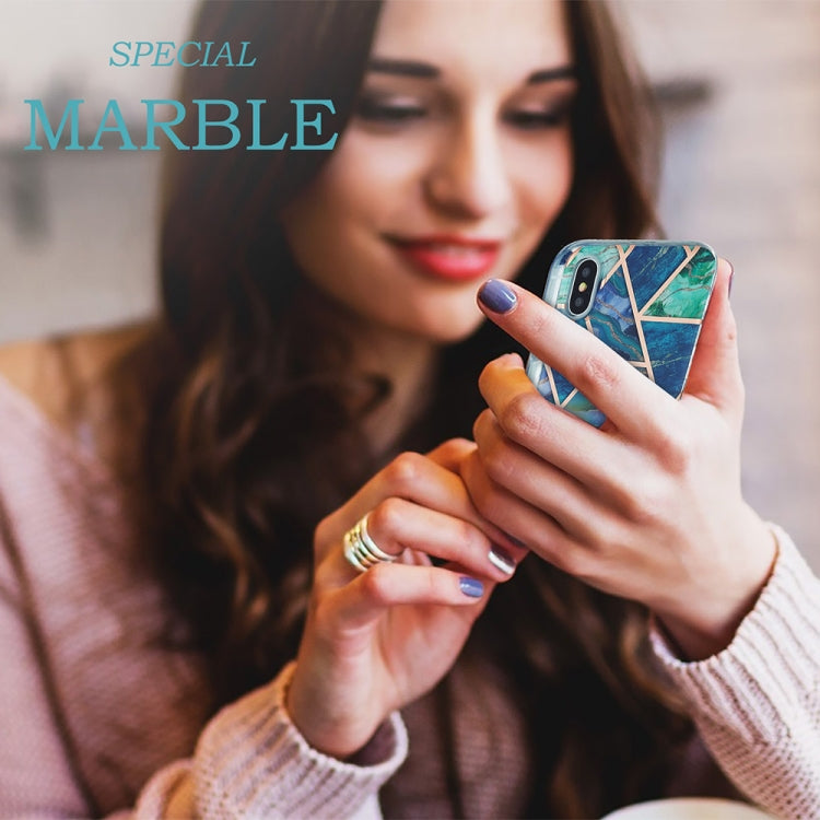 Estuche Protector TPU para iPhone X Xs Patrón Mármol Galvanizado 3D (Verde Oscuro)