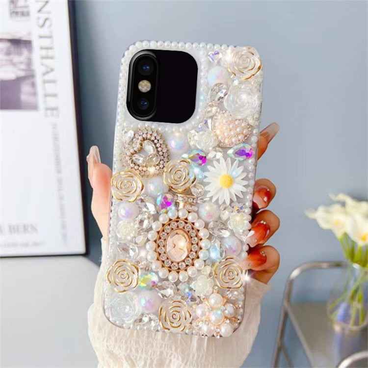 Funda para Teléfono iPhone X / Xs con Incrustaciones de Diamantes y Rosas para PC (Blanco)