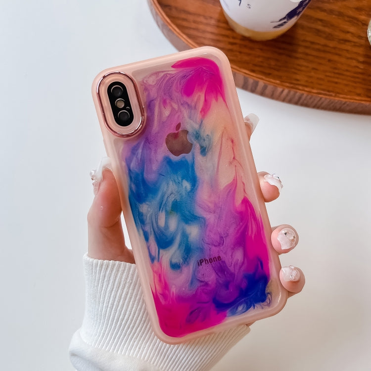 Caja del Teléfono TPU para iPhone X Xs Pintura al Óleo Galvanoplastia (Rosa)