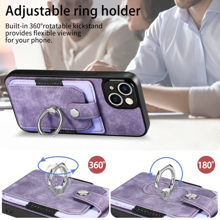 Funda para iPhone X Xs Retro Skin-Feel Ring Card Wallet Phone Case (Púrpura)