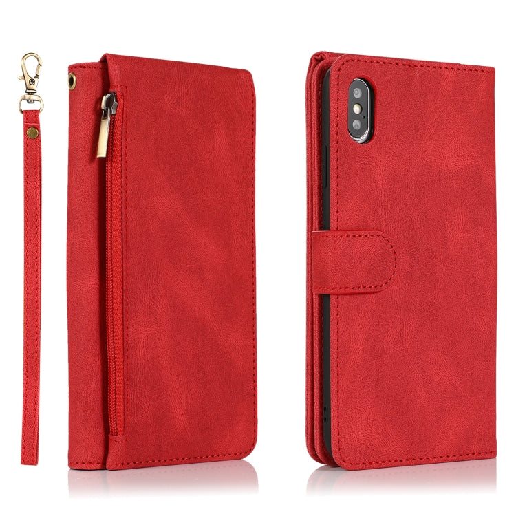 Estuche para iPhone X Xs Crazy Horse Cuero con Tapa Soporte Ranuras y Cordón (Rojo)