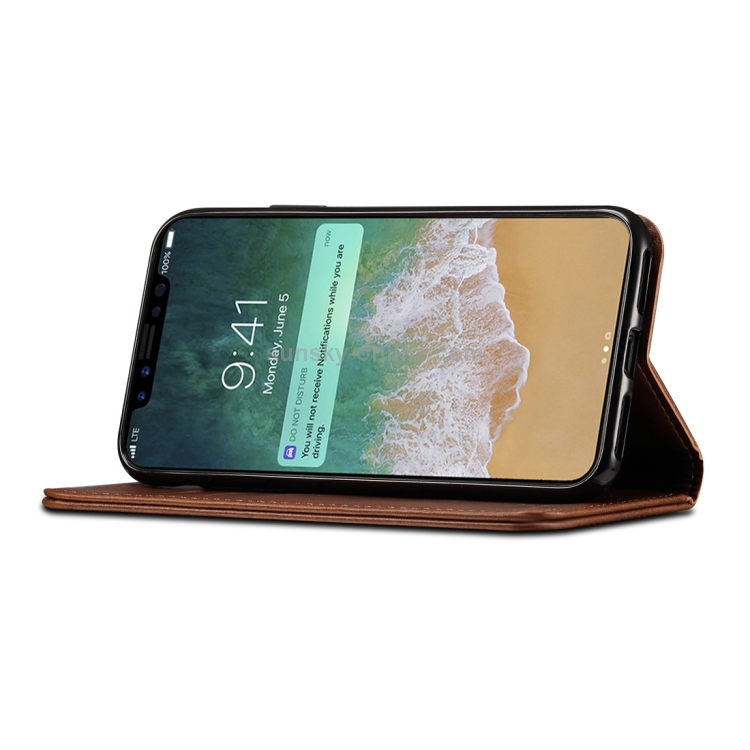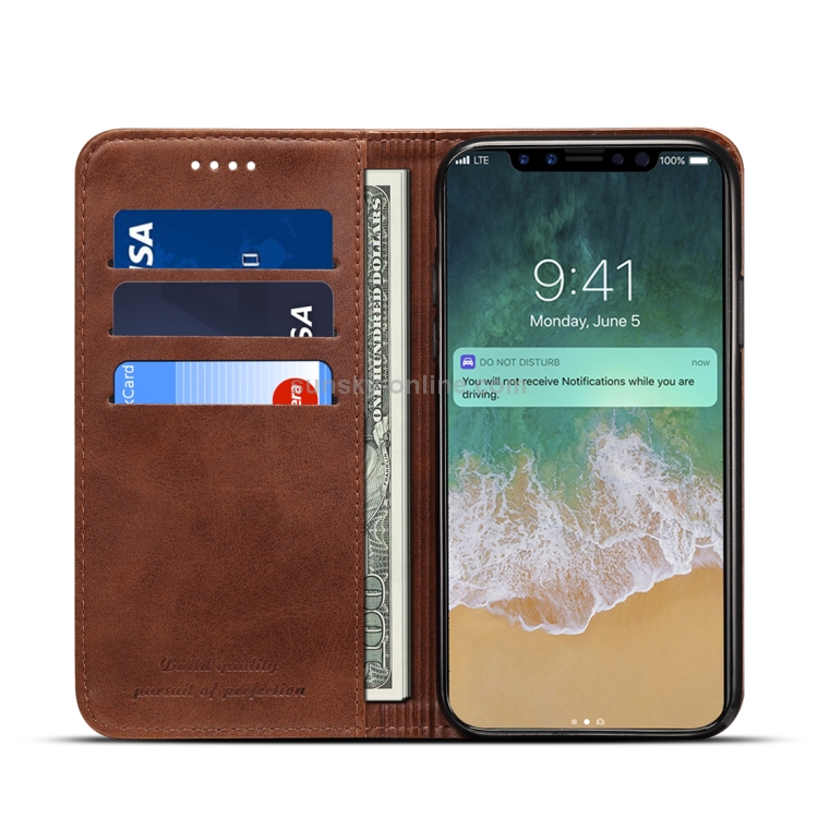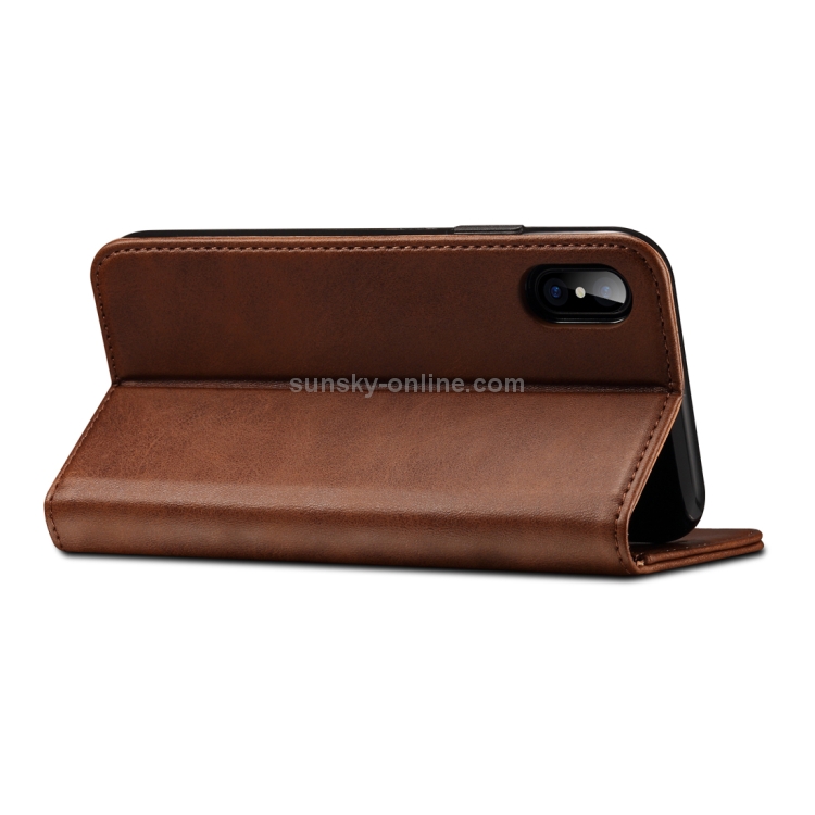 Funda para iPhone X Xs Suteni Calf Texture Cuero Tapa Horizontal Soporte Ranuras Tarjetas Billetera (Café)