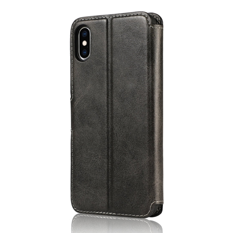 Funda de Cuero iPhone X Xs Textura de Becerro Hebilla Magnética Tapa Horizontal Soporte Ranuras Tarjetas Billetera Marco Fotos (Negro)