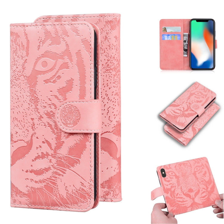 Funda de Cuero para iPhone X / Xs Tiger Embossing con Tapa Horizontal Soporte Ranuras y Billetera (Rosa)