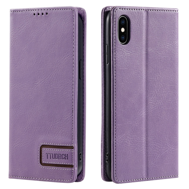 Funda de Teléfono Ttudrch para iPhone X / Xs Cuero Magnético con Textura Retro (Púrpura)