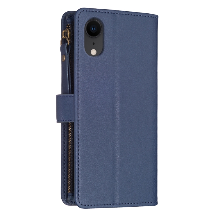 Funda Cartera para iPhone Xr 9 Ranuras para Tarjetas Cremallera Cuero con Tapa (Azul)