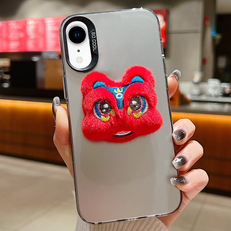 Funda para teléfono Apple iPhone Xr Año Nuevo Lion Dance Plush Doll (Grey Back Red Lion)