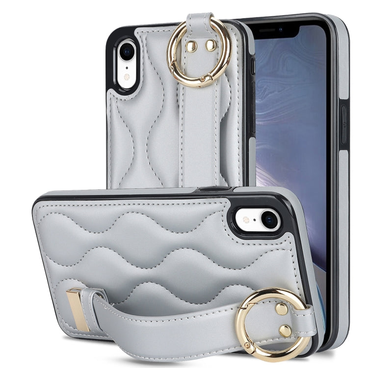 Funda para iPhone Xr Antideslizante Cobertura Completa Anillo PU con Muñequera (Plata)
