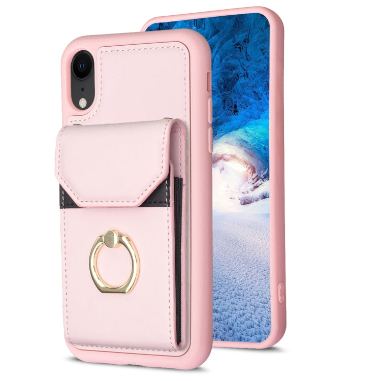 Funda para Teléfono iPhone Xr Bf29 con Soporte para Anillo y Bolsa para Tarjeta (Rosa)