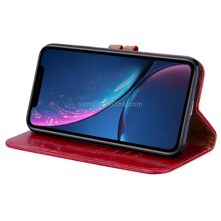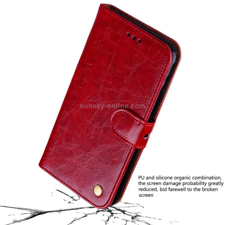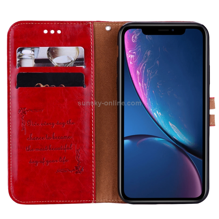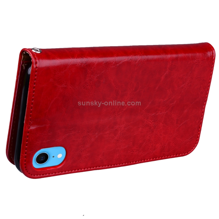 Funda de Cuero para iPhone Xr Business Style Oil Wax Texture con Tapa Horizontal, Soporte y Ranuras para Tarjetas (Rojo)