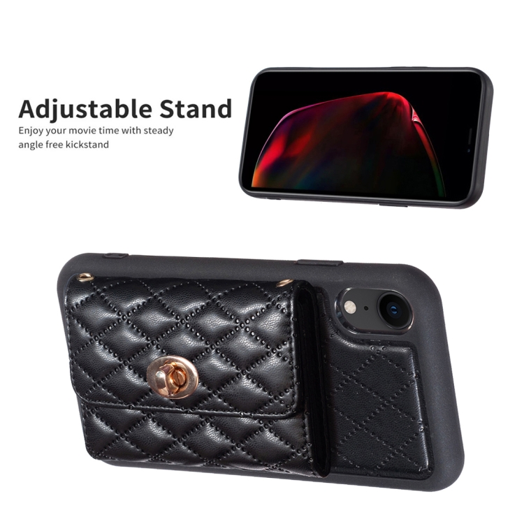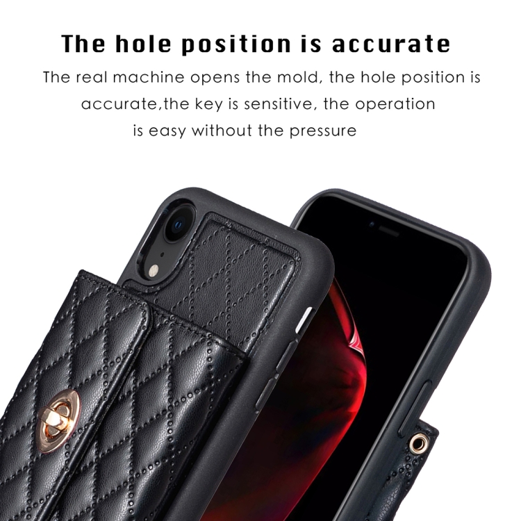Funda para iPhone Xr Rombal Caja de Teléfono Cuero con Hebilla de Metal Horizontal (Negro)