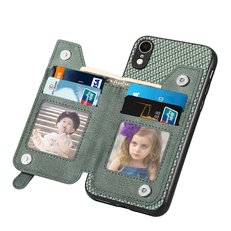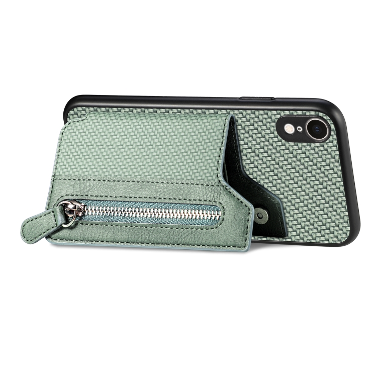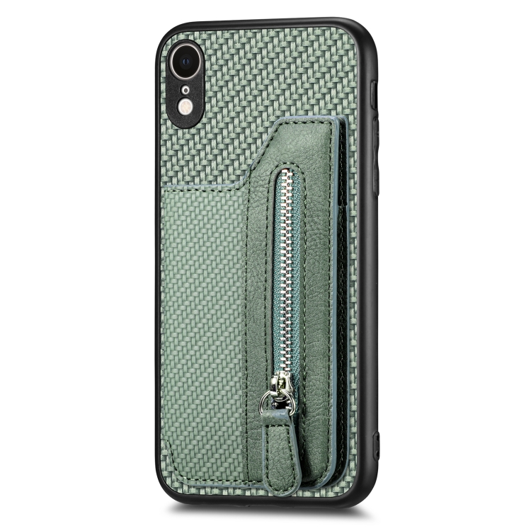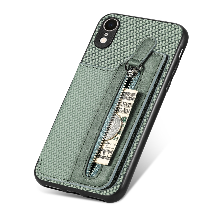 Funda para iPhone Xr Carbon Fiber Horizontal Flip Zipper Wallet Phone Case (Verde)