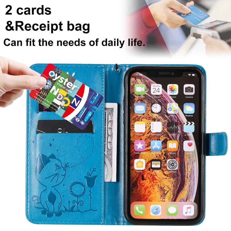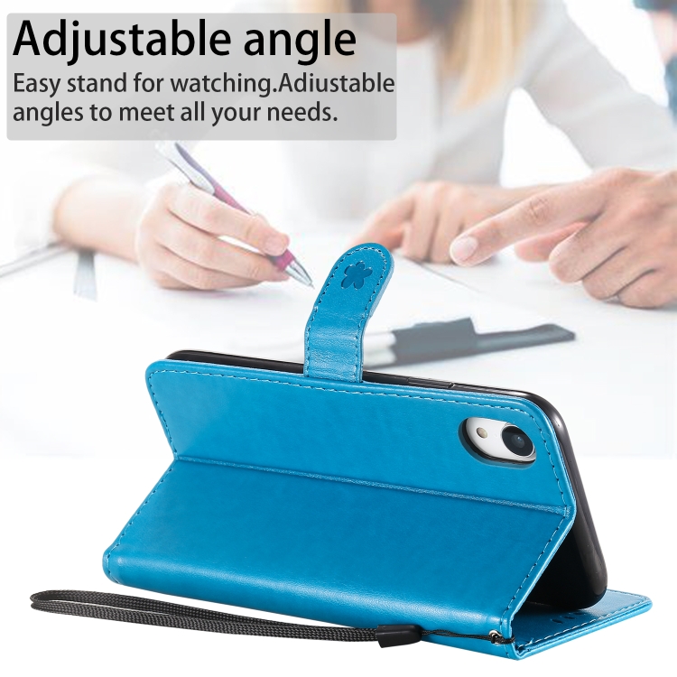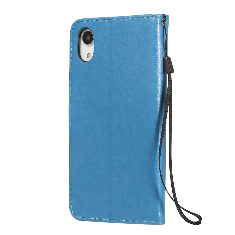 Funda de Cuero Cat Bee para iPhone Xr con Tapa Horizontal Soporte y Ranuras para Tarjetas (Azul)